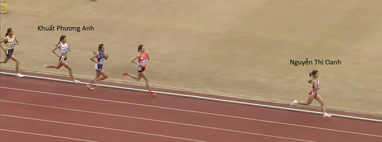 Trận đấu diễn ra như mong đợi, ngay từ lúc xuất phát cho đến kết thúc, Oanh đã tách khỏi nhóm chạy phía sau, một mình solo tiến về đích với thời gian 4 phút 14,98 giây. Kết quả 1.500 mét nữ, hai vận động viên Việt Nam đã xuất sắc đứng nhất nhì bảng: HCV thuộc về Nguyễn Thị Oanh, Khuất Phương Anh giữ HCB nội dung. Đồng thời, BTC cũng đã quyết định trao tiền thưởng nóng cho hai chân chạy nữ này.