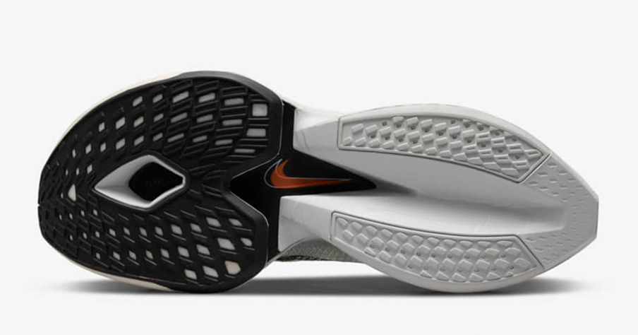 Ngoài ra, những đường vân gợn sóng ở đế ngoài trước kia nay đã được thay thế bằng những ô chữ nhật dài và chi chít, đồng thời đế giữa cũng được cấu tạo bởi chất liệu nhẹ và mỏng hơn, rãnh hình thoi được khoét sâu hơn để lộ rõ hơn tấm sợi carbon, đây là điểm mà ad cho rằng NIKE muốn làm giảm trọng lượng cho giày chạy ZoomX AlphaFly NEXT% 2.