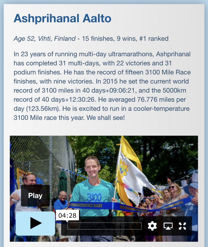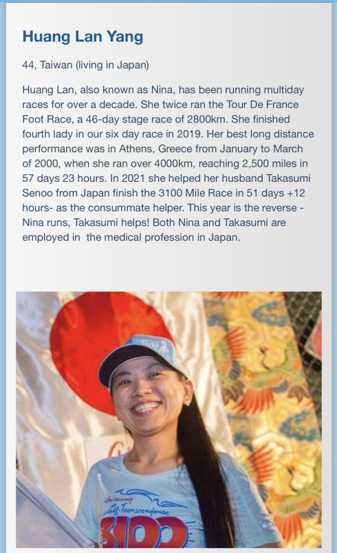 Theo Lo Wei-ming, trong số 14 VĐV tham dự năm nay, runner mạnh nhất là Ashprihanal Aalto của Phần Lan, người từng có đến 15 lần kinh nghiệm hoàn thành giải đua, trong đó có đến 9 lần giành danh hiệu vô địch. Thông số 40 ngày 9 giờ 06 phút 21 giây của Aalto hiện vẫn chưa có đối thủ.