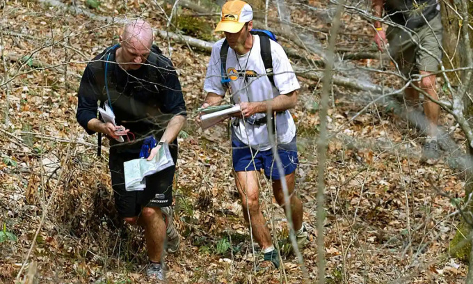 Runner tìm đường bằng bản đồ và la bàn. Ảnh: AP