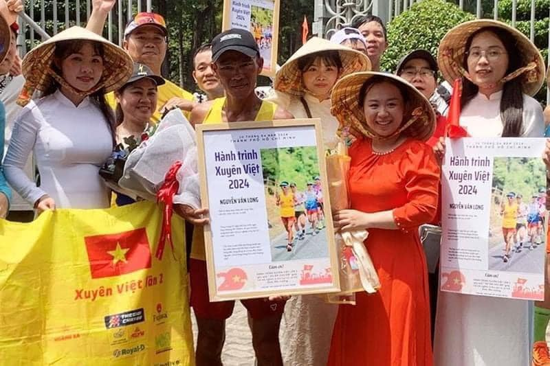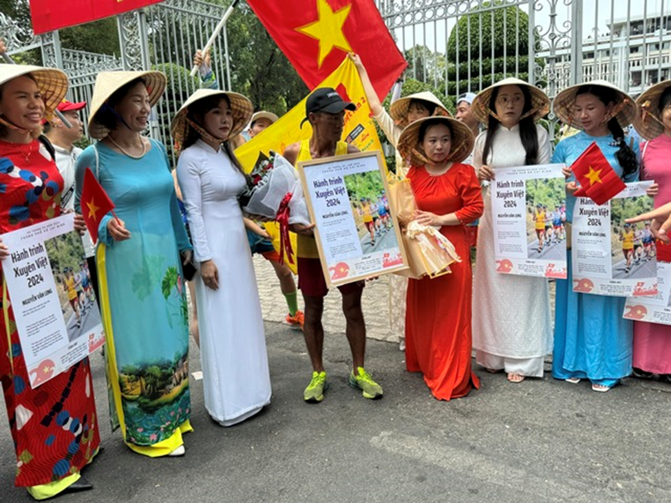 Hành trình chạy bộ xuyên Việt của VĐV phong trào nổi tiếng Nguyễn Văn Long, xuất phát từ Hà Nội ngày 11-4 và đi qua 17 tỉnh thành với tổng chiều dài 1.846 km, đã kết thúc trưa 30-4 ngay trước Hội trường Thống Nhất (TP HCM).