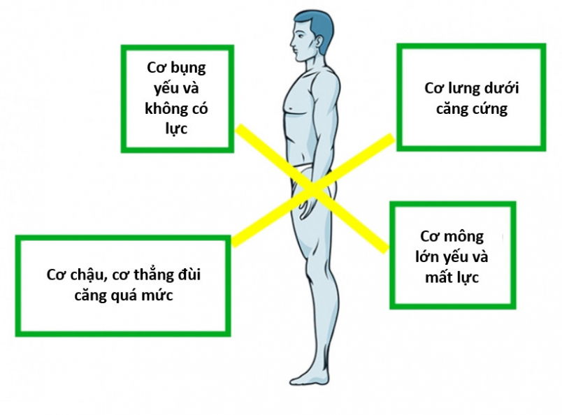 Khái niệm này cũng đề cập đến vấn đề các động tác lớn trong sinh hoạt cao được xếp vào tình trạng lạm dụng cơ quá mức, dẫn đến sự căng cứng của các nhóm cơ. Ví dụ, cơ thẳng trước của đùi giúp xương chậu ngả về trước, các nhóm cơ hỗ trợ nghiêng về phía sau như cơ thắt lưng lớn, cơ mông, cơ bịt trong (obturator internus). Các nhóm cơ này thường xuyên bị kéo căng quá mức hoặc trở nên yếu, gây ra hiện tượng căng cứng. Do đó, chúng ta có thể thực hiện một số bài tập stretching để cường hóa nhóm cơ này.