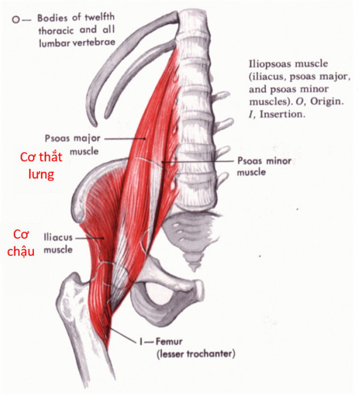 Theo góc độ phẫu thuật thì chúng ta có thể thấy được cơ thắt lưng - chậu (Iliopsoas) là một nhóm cơ chính nằm sâu bên trong, cơ chậu nối cạnh trên của vùng xương chậu với xương đùi, cơ thắt lưng lớn nối với cơ thắt lưng nhỏ, từ mặt trước của sống lưng qua xương chậu rồi đến cơ chậu, sau đó là xương đùi.