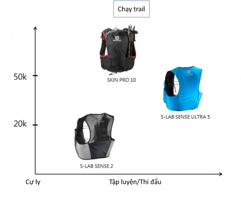 Làm cách nào để chọn ba lô tiếp nước phù hợp cho mình? Đây là câu hỏi của khá nhiều runner trong việc mua sắm trang thiết bị cho mình. Ở đây, chúng tôi kiến nghị bạn nên căn cứ vào thể tích bình nước và nhu cầu cá nhân để chọn túi nước phù hợp. Ví dụ (đối với sản phẩm Salomon):