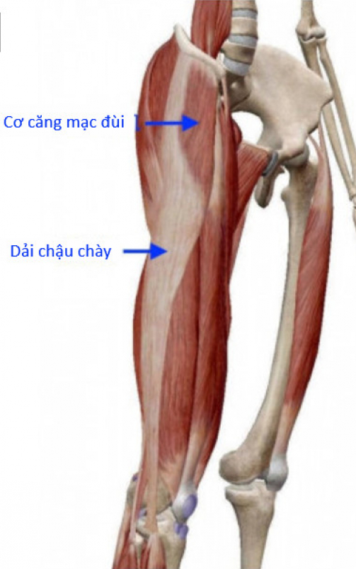 Dải chậu chày là một bó sợi dài kéo từ phần đùi để đến bắp chân dưới sát đầu gối. Sử dụng banh tennis để maxta giúp thư giãn ITB. (Nguồn ảnh: Lyon)