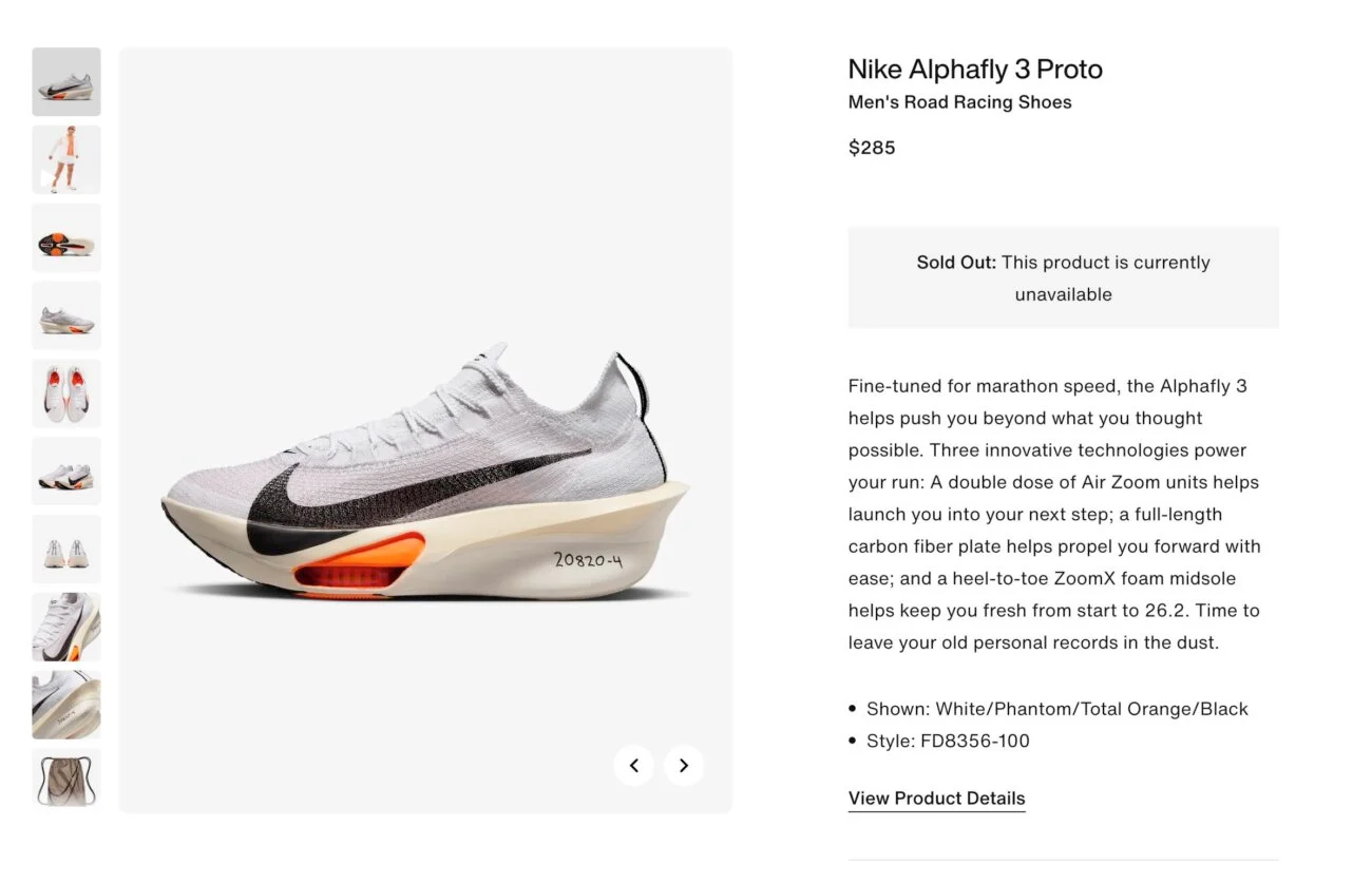 Khi nhà sản xuất Mỹ này mở bán toàn cầu sáng 4/1/2024 theo giờ Washington với giá 285 USD tương đương 6,98 triệu đồng, toàn bộ nguồn cung trang web chính thức của Nike được mua hết chỉ trong hai phút. Với giá bán lẻ là 285 USD, có vẻ là khá nhiều để chi trả cho 1 đôi giày chạy bộ nhưng những gì bạn đang trả tiền thực sự là để trở thành người thử nghiệm beta công nghệ giày chạy bộ tiên tiến, bù đắp chi phí nghiên cứu và phát triển đặc biệt mà Nike đã chi trả cho mỗi siêu giày chạy mới được phát hành.